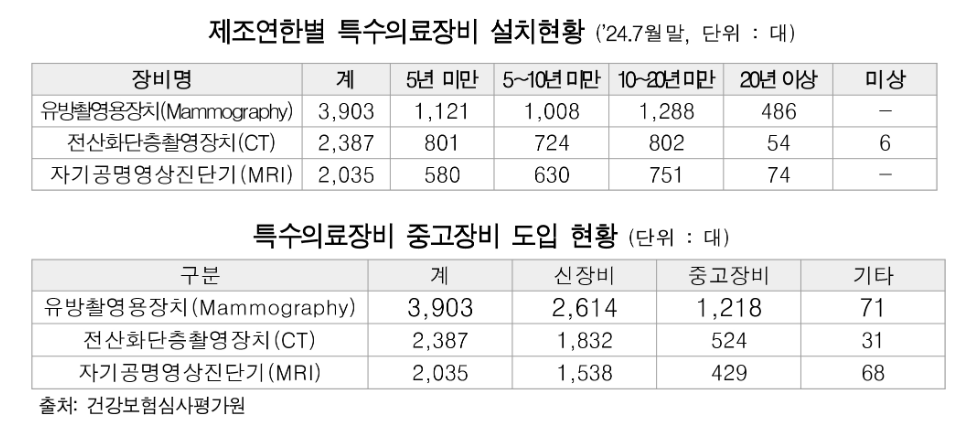 [241016] MRI·CT 등 양방 특수진단장비, 50% 가까이 노후·26%는 중고